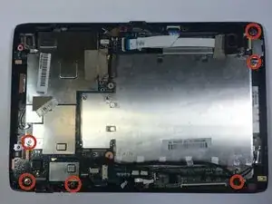 Снимите винты длиной 5 мм, которые фиксируют аккумулятор в корпусе планшета.