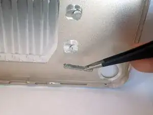 Используйте большой пластиковый инструмент для открытия, чтобы отделить заднюю крышку от устройства. Вставьте острый конец инструмента в щель и используйте рычаг, чтобы дальше отделить заднюю крышку от устройства.