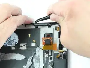 Используя наклонные пинцеты, начните извлекать антенну из устройства.
