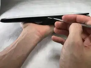 Продолжайте поддевать вдоль каждого края устройства до тех пор, пока задняя крышка не освободится.