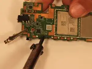 Отключите шлейф, соединяющий плату порта зарядки с материнской платой, при помощи пинцета.
