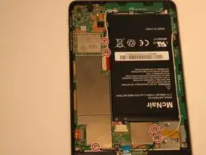 Снимите порт зарядки (micro-USB), открутив указанные винты с помощью отвёртки Phillips #00.