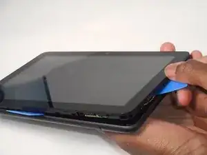 Когда появится зазор между корпусом и экраном, поместите медиатор между экраном и углом задней крышки.
