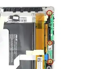 Используйте отвертку Philips #00 для удаления трех винтов длиной 3 миллиметра, крепящих переднюю панель к задней панели, расположенным в нижней части планшета рядом с портом.