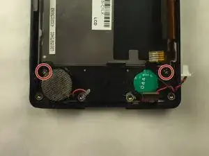 Снимите два винта 9.6 мм у динамика и зелёной батареи с помощью отвертки JIS #0.