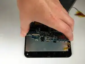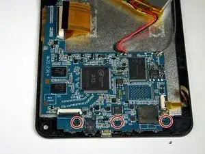 Поверните планшет на 90 градусов и удалите три (3) винта Phillips #00 длиной 1,3 мм, удерживающие материнскую плату на месте.