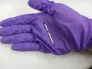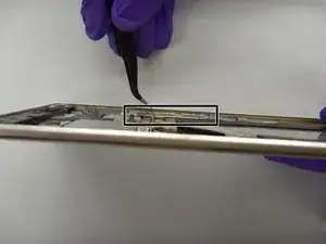 С помощью пары пинцетов аккуратно удалите серую пластиковую деталь.