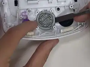 Используйте небольшой пластиковый инструмент для открывания, чтобы отделить цветную переднюю панель от белой задней крышки устройства.