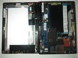 Откройте экран планшета влево (как книгу), следя за тем, чтобы не отсоединить кабели, соединяющие экран с корпусом.
