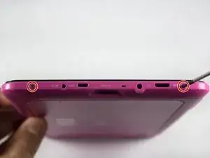 Используйте отвертку, чтобы удалить два винта типа Phillips 00 с правой стороны планшета.