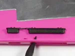Кнопки расположены в нижнем левом углу розовой задней панели. Просто выньте старые кнопки с помощью лопатки или аналогичного инструмента.