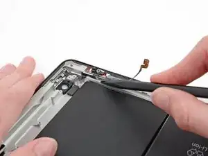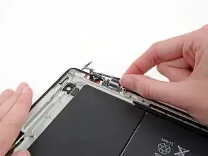 Поднимите и удалите кабель кнопок питания и громкости из iPad.