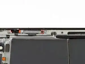Антенна Wi-Fi крепится винтами и кабелем к нижнему правому краю задней панели iPad. Из-за ориентации антенны Wi-Fi крайне важно действовать аккуратно, иначе антенна может быть безвозвратно повреждена.