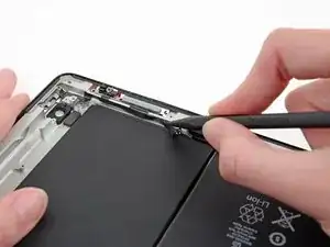 Удалите единственный винт Phillips #00 длиной 2,6 мм, который крепит рамку кнопки громкости к алюминиевой раме.