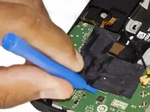 Снимите ленту, закрывающую верхнюю правую часть материнской платы. Пластиковые инструменты для открытия полезны для аккуратного снятия ленты.