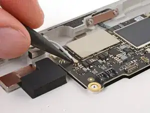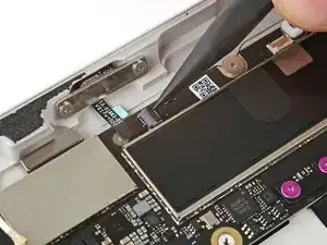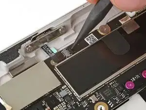 Используйте конец лопатки или чистый ноготь, чтобы поднять небольшой запирающий клапан на внешнем крае разъема ZIF задней камеры.