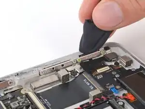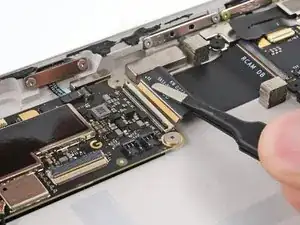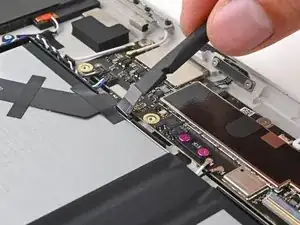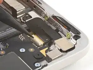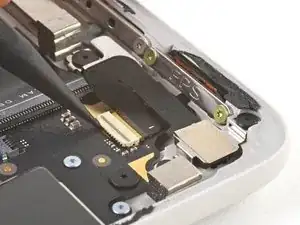 Используйте плоский конец своей лопатки, чтобы поддеть и отключить соединитель порта USB-C.