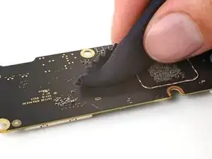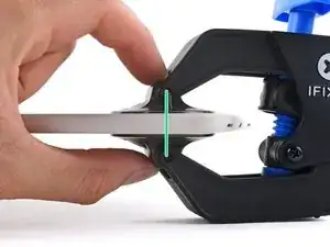 Не вставляйте вашу лопатку глубже 7 мм, или примерно на полпути между кончиком лопатки и логотипом iFixit.
