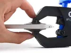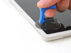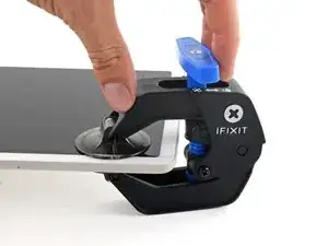 Переместите руки над верхним левым углом, при этом одна присоска должна быть на задней крышке, а другая — на экране.