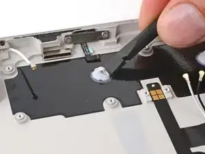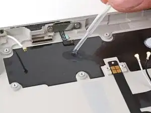Используйте вашу лопатку, чтобы отключить разъем левой антенны, приподняв металлический провод кабеля вверх.