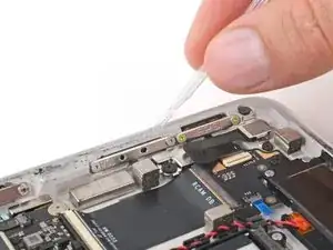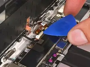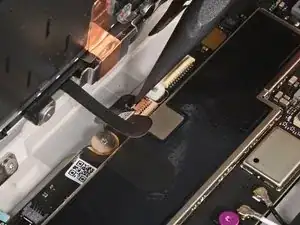 Используйте конец лопатки или чистый ноготь, чтобы поднять маленькую фиксирующую планку на внутреннем краю (сторона с кабелем) разъема ZIF экрана.