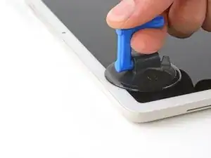 Потяните за присоску с сильным и равномерным усилием, пока не образуется зазор между стеклом и рамкой.