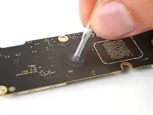 Используйте пипетку или шприц, чтобы капнуть пару капель высококонцентрированного изопропилового спирта (более 90%) на остатки термопасты.