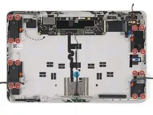 Используйте биту Torx Plus 2IP, чтобы удалить шестнадцать винтов длиной 2.7 мм, удерживающих четыре динамика.