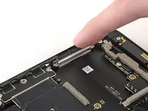 Используйте отвертку T3, чтобы удалить два винта длиной 2.4 мм, держущие кронштейн кнопки громкости.