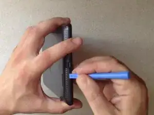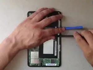 LCD-дисплей удерживается металлической рамкой, приклеенной к сенсорному экрану. С помощью ножа аккуратно начните открывать рамку, чтобы удалить LCD-дисплей.