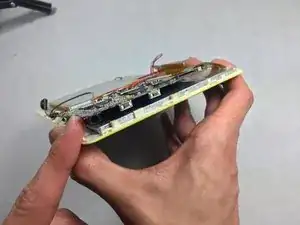 Как только крышка снята, аккуратно выньте динамик из его пластикового удерживающего гнезда, избегая разделения соединений с проводами.