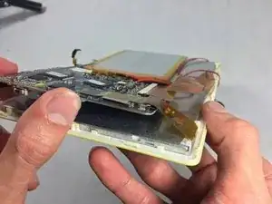Оба - аккумулятор и материнская плата - будут все еще подключены к некоторым проводам, которые являются пайками, старайтесь избегать разрыва этих соединений.