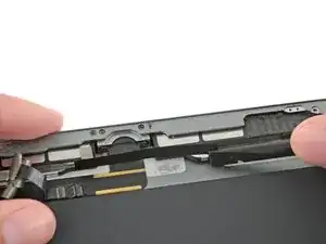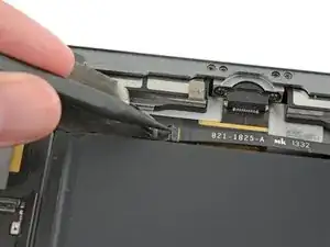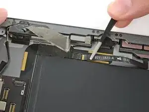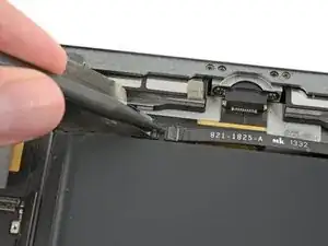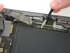 Вставьте лопатку под левый антенный кабель, разъём которого находится дальше от края iPad. Поднимите вверх, чтобы отсоединить разъём антенного кабеля.
