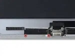 Удалите три винта Phillips 1,3 мм с кронштейна кабеля дисплея.
