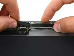 Не пытайтесь пока снять дисплей — он всё ещё соединён с задней крышкой тремя хрупкими ленточными кабелями.