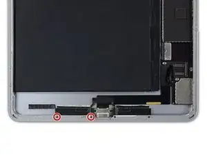 Удалите два винта Phillips #00 длиной 1,5 мм слева от порта Lightning.