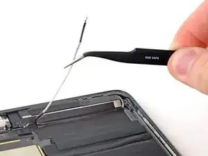 Используйте пинцет, чтобы оторвать левый кабель антенны от задней крышки.