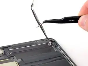 Используйте пинцет, чтобы отсоединить кабель антенны от платы, подняв кабель как можно ближе к разъёму.