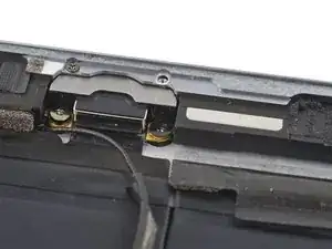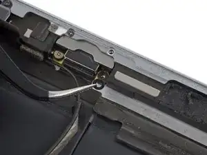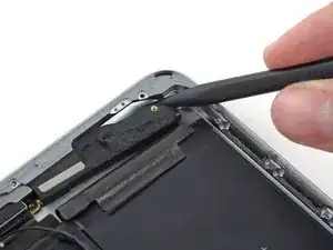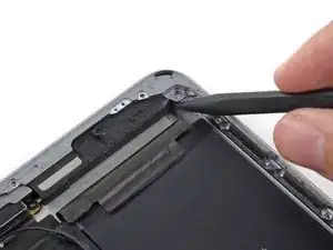 Используйте наконечник лапатки, чтобы поддеть ленту кабеля антенны от задней крышки iPad.