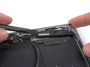 Нажмите со стороны разъёма Lightning плоским концом лапатки, чтобы освободить динамик от кромки задней крышки.