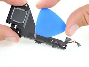 Захлопните лезвие для вскрытия под кабель кнопок громкости и питания, чтобы отделить клей, фиксирующий кабель к динамику.