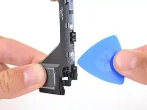 Используйте заострённый конец медиатора (лопатки), чтобы приподнять разъём рядом с фронтальной камерой и отключить его.