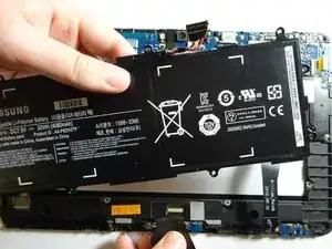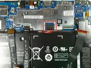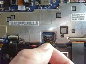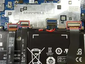 Отключите три ленточных кабеля от материнской платы, чтобы освободить аккумулятор.