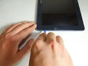 Вставьте пластиковый инструмент для поддевания или медиатор между стеклом и пластиковым корпусом.