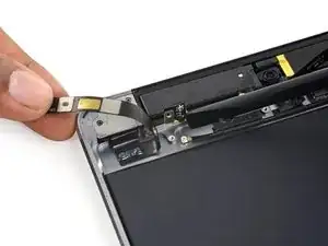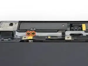 Снимите четыре винта Phillips 1.2 мм над скобой разъема аккумулятора/дисплея.
