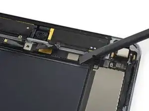 Вставьте предыдущий медиатор глубже в iPad и проведите им от камеры в сторону угла.