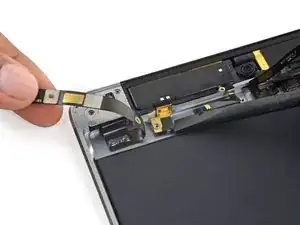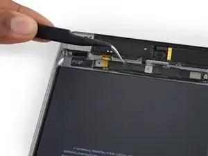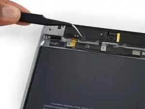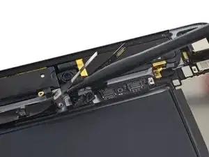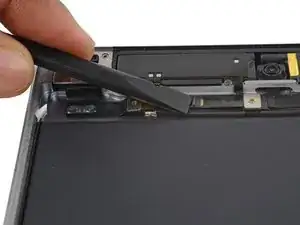 Поверните два медиатора у верхнего края iPad, чтобы разорвать последние участки клея, держащие сборку дисплея.