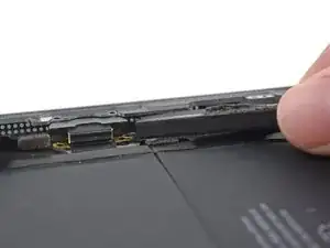 Не пытайтесь полностью извлечь ЖК-дисплей. Он всё ещё закреплён клеем и подключён к iPad несколькими кабелями с торца кнопки «Домой». Поднимайте только за край с передней камерой.