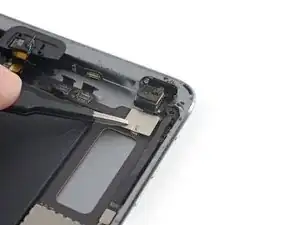 Избегайте прохождения лопатки над фронтальной камерой, чтобы не занести клей на объектив или не повредить камеру. В следующих шагах подробно описано, как лучше всего избежать воздействия на фронтальную камеру.