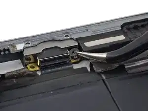 Выкрутите следующие винты Phillips #00 из крепления кабеля дисплея: